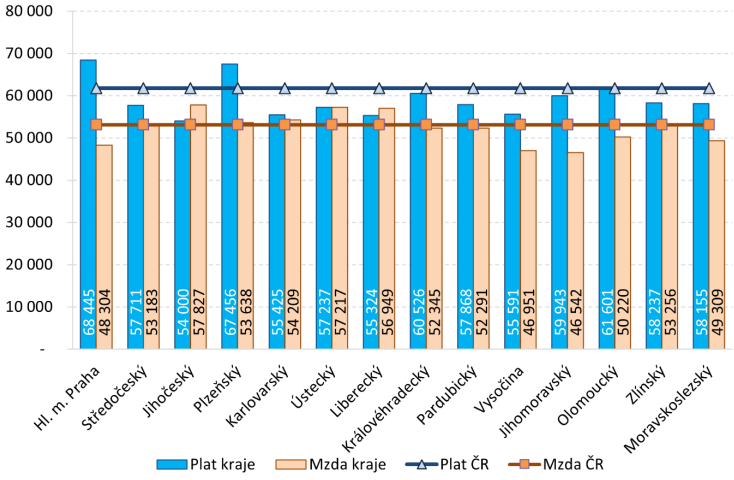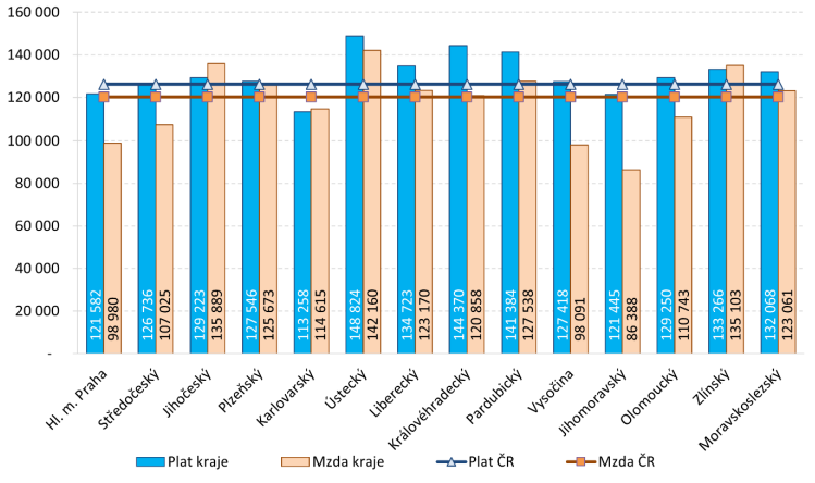Data navíc ukazují, že ve veřejném sektoru není region, kde by průměrný příjem klesl pod průměrnou úroveň republikových mezd.