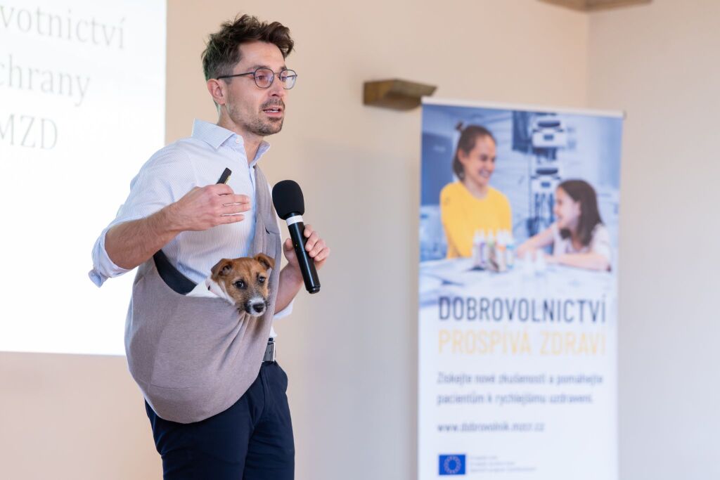 „Terapie za přítomnosti zvířat není jen milé zpestření dne. Má v medicíně své pevné místo. Snižuje stres, podporuje motivaci pacientů, zlepšuje náladu, pozitivně ovlivňuje krevní tlak i vnímání bolesti. U dětí, seniorů i dlouhodobě nemocných dokáže udělat často víc, než by se čekalo,“ píše na sociální síti Linkedin právě ředitel Fošum a připojuje svoji fotografii z přednášky o dobrovolnictví v Česku, z níž je patrné, jaký je jeho osobní vztah ke zvířatům.