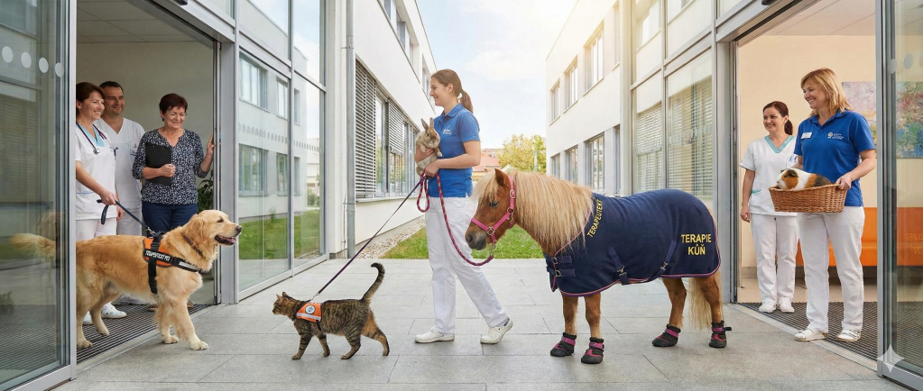 Ačkoliv tato zvířata „nechodí“ do nemocnice, jsou zásadní součástí léčebné rehabilitace pacientů, kteří v nemocnicích tráví čas.