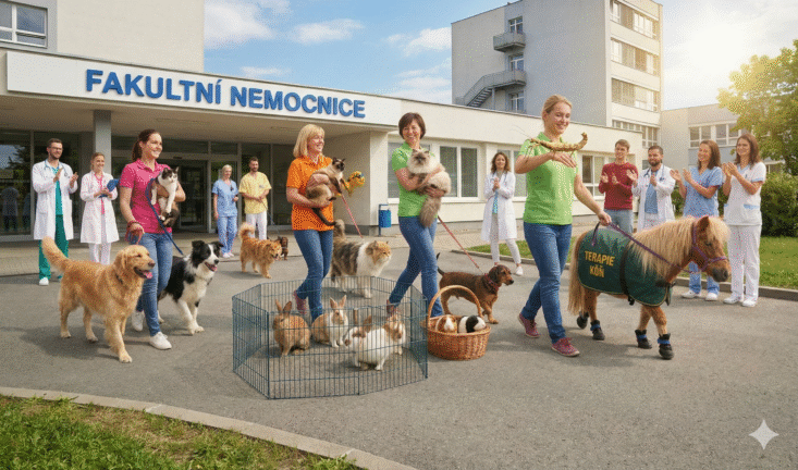 Ačkoliv tato zvířata „nechodí“ do nemocnice, jsou zásadní součástí léčebné rehabilitace pacientů, kteří v nemocnicích tráví čas.