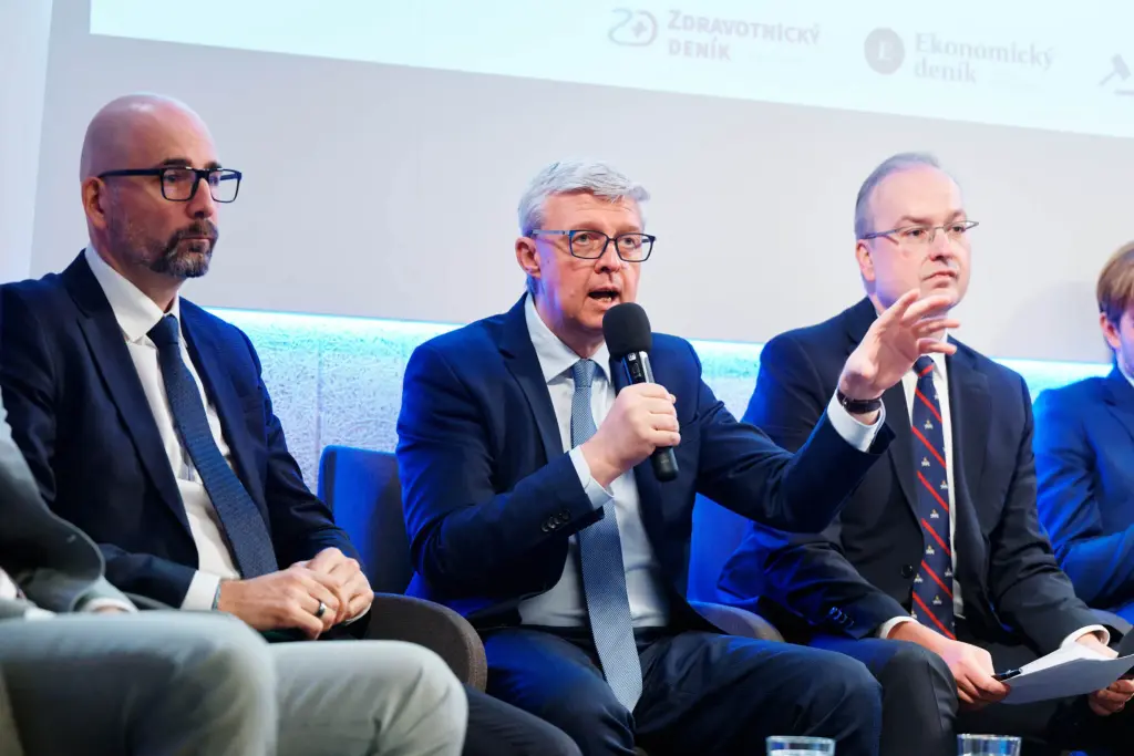 Na německé dotování cen elektřiny budeme muset adekvátně reagovat, upozornil místopředseda hnutí ANO Karel Havlíček. Nalevo od něj sedí obchodní ředitel společnosti Veolia Energie ČR Jakub Tobola, napravo vydavatel Ekonomického deníku a České justice Ivo Hartmann. Foto: Radek Čepelák