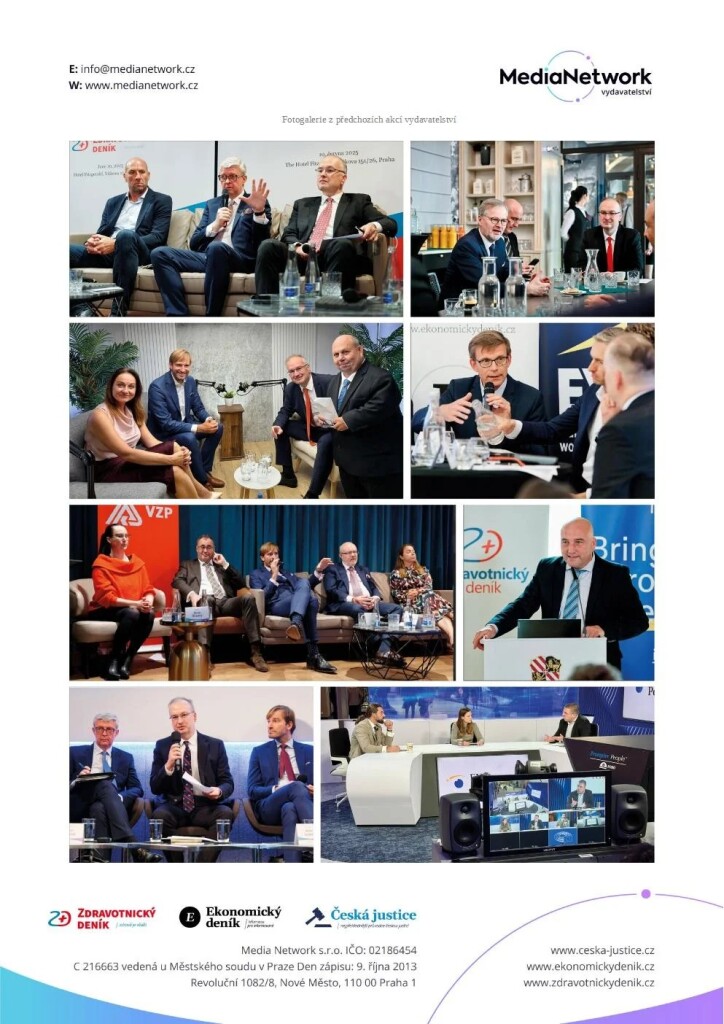 Vrchní ředitel ministerstva zdravotnictví Petr Jarema, odborník na řízení rizik Michal Vláčil ze společnosti SATUM Czech, partner advokátní kanceláře Portos Jan Fical a Robert Kareš z Pojišťovny VZP nabídnou lekci z risk managementu. Na příkladech z praxe ukážou, kam až sahá odpovědnost poskytovatelů zdravotní péče či jak správně vysoutěžit a nastavit profesní pojištění.