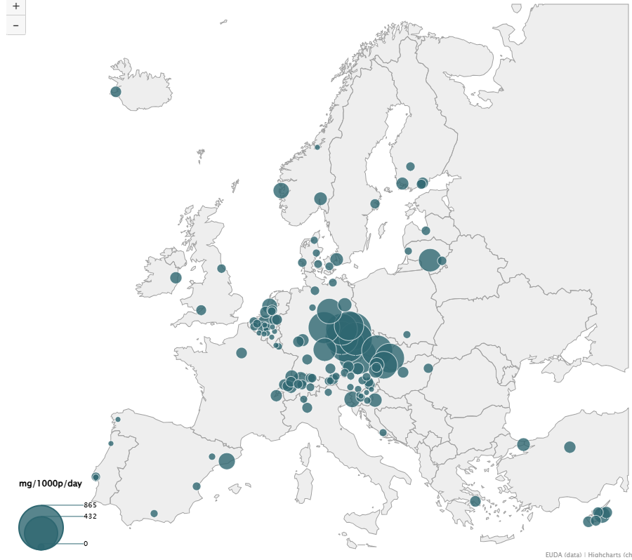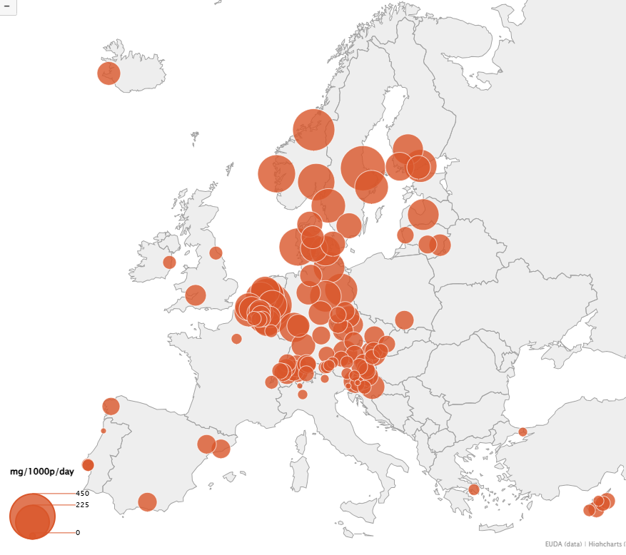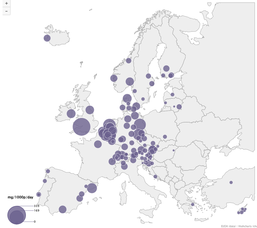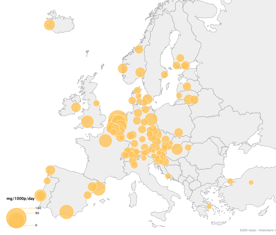 Z 82 měst mělo 36 nárůst, 27 pokles a 19 zůstalo stabilní. Z globálního hlediska pak analýza odpadních vod ukazuje nižší hladiny amfetaminu mimo EU.