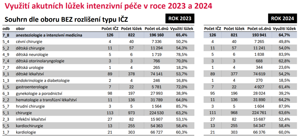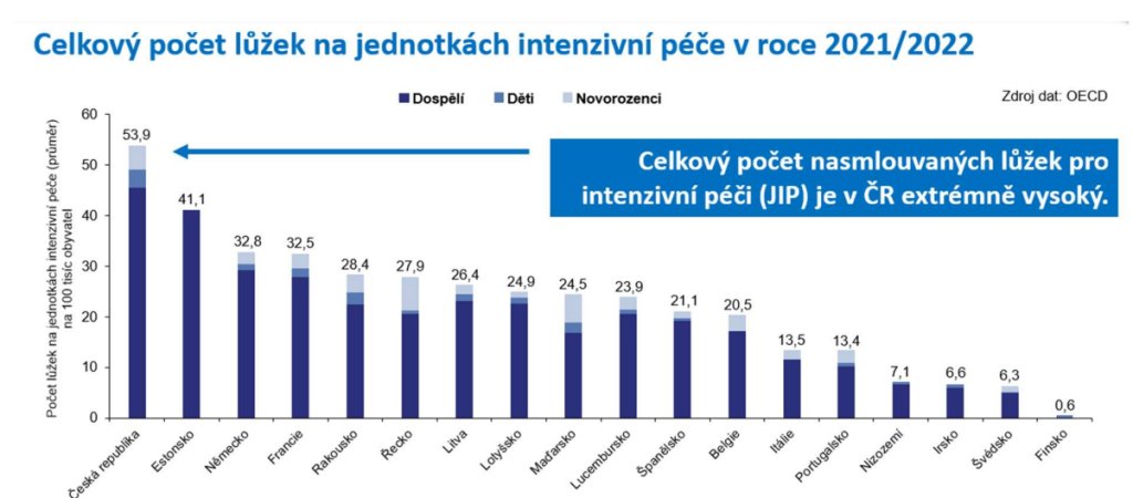 Zatímco Česko tak má 40 intenzivních lůžek na 100 tisíc obyvatel, průměr OECD je 17. A evropský průměr se pohybuje mezi 11 až 12 lůžky. Naše síť navíc trpí nejednotnou klasifikací typu lůžek, rozdílnou organizací i absencí koordinace. A běžné jsou indikace intenzivní péče u pacientů, u kterých nemá žádný přínos.