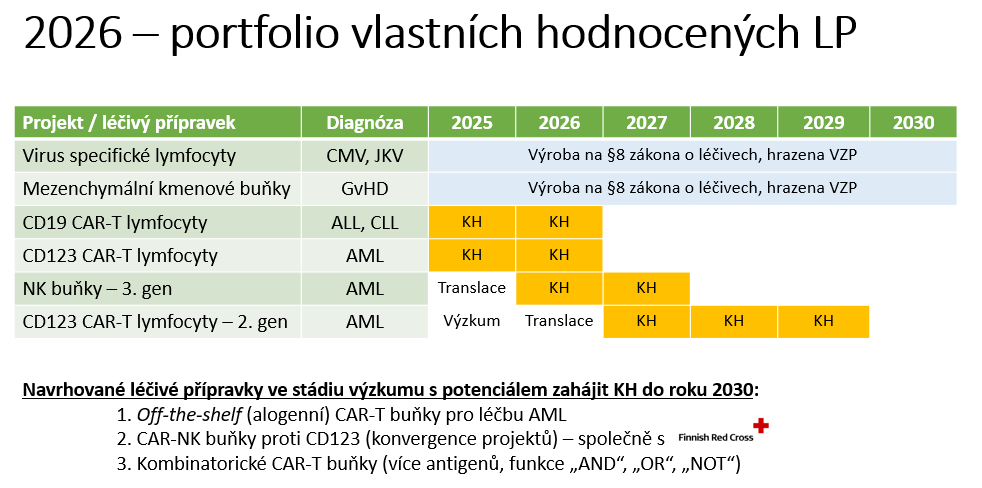 V roce 2024 se povedlo v patřičné kvalitě vyrobit CAR-T proti antigenu CD123 u pacientů s akutní myeloidní leukémií před transplantací. Loni pak odstartovalo klinické hodnocení u lidí. Čeští pacienti se tak dostanou k terapii, k níž by jinak neměli přístup.