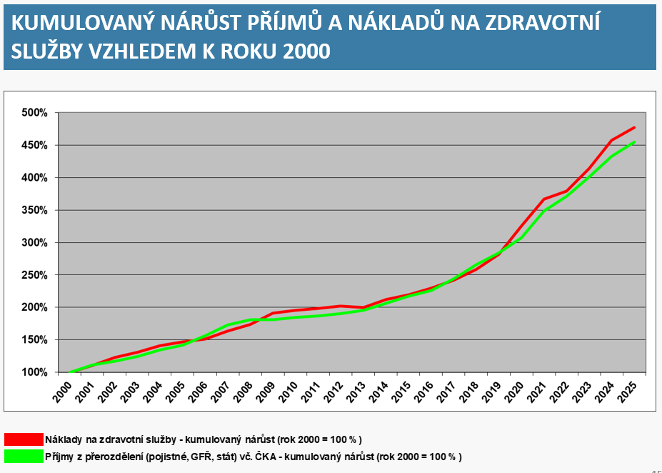 A jak se zdravotnictví vyvíjí po ekonomické stránce? V roce 2025 dosáhly celkové příjmy zdravotních pojišťoven téměř 524 miliard. 370 miliard se vybralo na pojistném a skoro 154 miliard na platbách za státní pojištěnce. V porovnání s předchozím rokem se příjmy zvedly o necelých 26 miliard. Státních pojištěnců přitom loni bylo 55 %, na celkových příjmech se ale podíleli ani ne z 30 %.