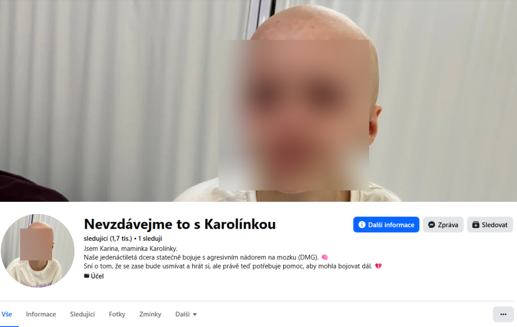 Na Facebooku se ve sbírce s názvem Nevzdávejme to s Karolínkou vybralo už téměř 12 milionů korun. Propagovaný příspěvek ukazuje fotky malé „Karolínky“ s holou hlavou a se slzami v očích. V textu se píše, že potřebuje peníze na „cestu do nemocnice v Bostonu“, kde ji čeká „pokročilá léčba“ a „šance na lepší život“. Jak ale zjistili investigativní novináři Radiožurnálu, sbírka vykazuje velmi podezřelé znaky. Informoval o tom web iROZHLAS.cz