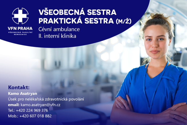 Všeobecná sestra / Praktická sestra (m/ž) | Cévní ambulance, II. interní klinika- kardiologie a angiologie- VFN
